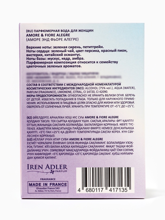 Этот аромат становится частью образа, подчёркивая индивидуальность и женственность, оставляя после себя лёгкое и запоминающееся впечатление. Amore & Fiore Alegre сочетает практичность, элегантность и изысканность, делая каждый день особенным и помогая женщине выделяться, оставаясь естественной и уверенной.