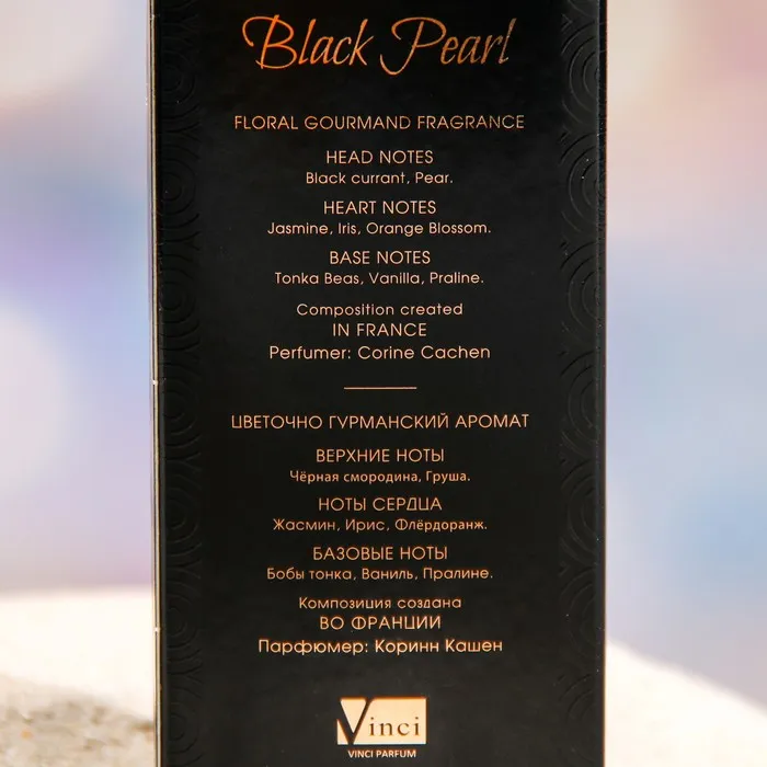 Ноты сердца: жасмин, ирис, апельсиновый цвет. Ноты базы: пачули, бобы тонка, ваниль, пралине.