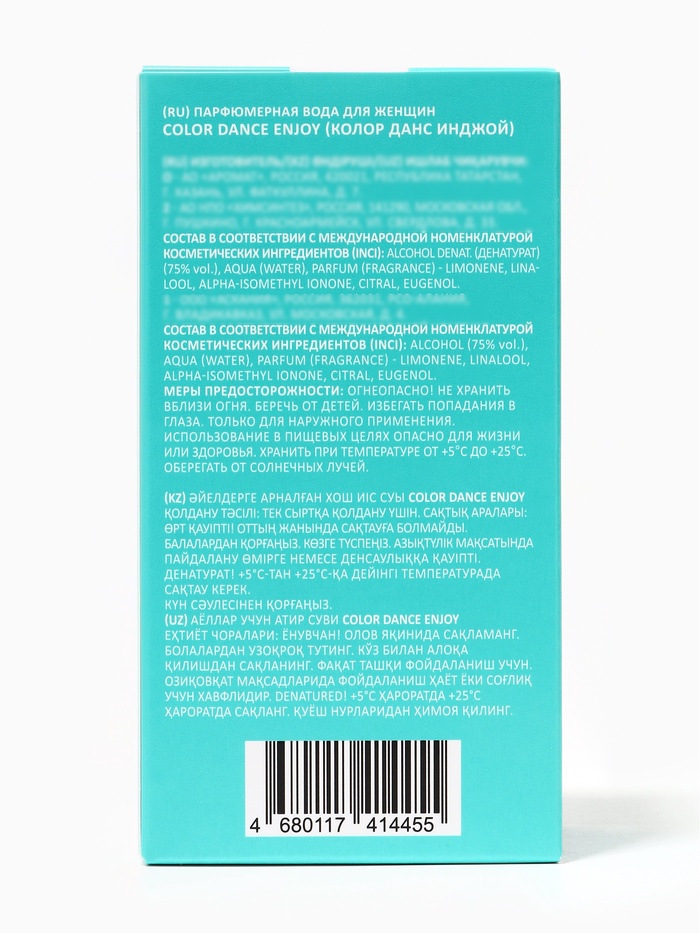 Женская парфюмерная вода COLOR Dance Enjoy — это аромат для той, кто живёт моментом, выбирает лёгкость, настоящую радость и умение быть собой. Он создан, чтобы сопровождать женщину в её ярких мгновениях: будь то прогулка по вечернему городу, встреча с подругами или момент неожиданного вдохновения.