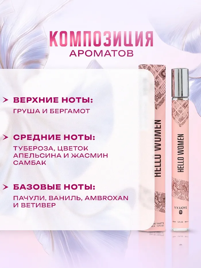 Hello Women — парфюмерная вода с цветочным древесно-мускусным ароматом для женщин.
