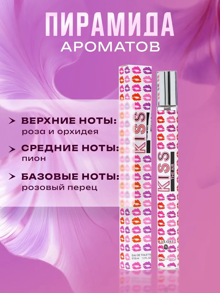 Kiss the air — тонкий, волнующий и сексуальный женский цветочный аромат с легкими ароматическими оттенками.