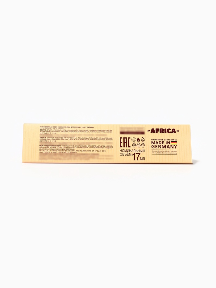 База построена на насыщенных акцентах черной амбры, ветивера и кедра, создающих благородный, бархатистый и устойчивый шлейф. Именно он делает Elite Africa одновременно тёплым, уверенным и чувственным. Феромоны усиливают природное притяжение, добавляют глубину и индивидуальность, помогая аромату уникально раскрываться на коже.