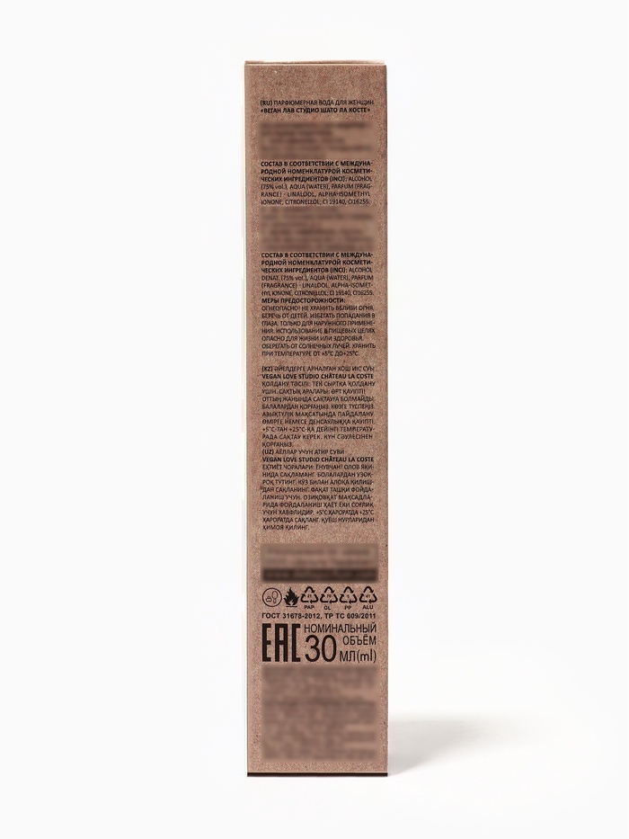 Флакон: 30 мл — компактный, стильный и современный, идеально подходит для ношения с собой, отражает концепцию аромата: утончённость, свежесть и лёгкая роскошь.
