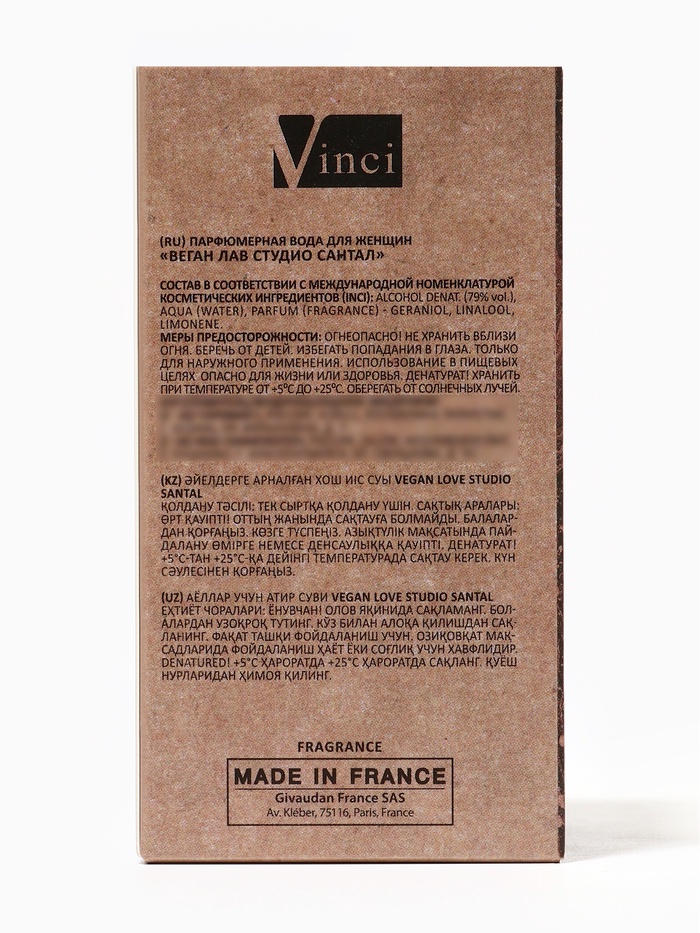 Парфюмерная вода женская Vegan Love Studio Santal, 50 мл (по мотивам Santal 33 (Le Labo) — Характеристики