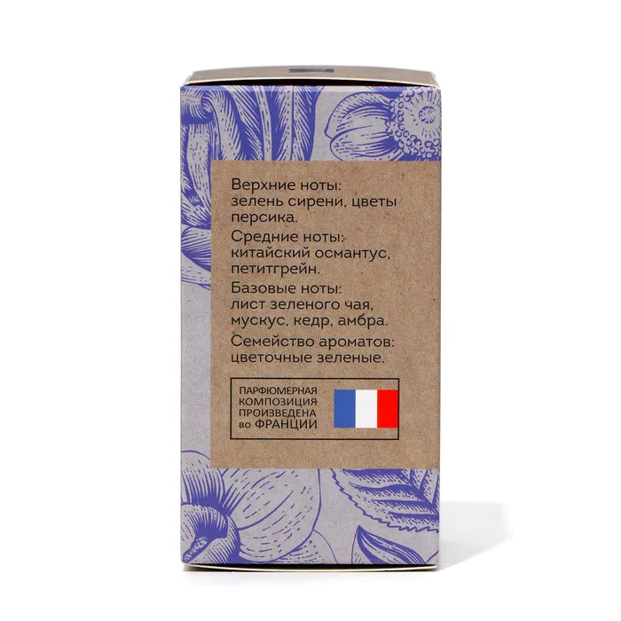 • Ноты: чай, кедр, сирень, вистерия, персиковый цвет, петитгрейн, османтус, мускус, пион, амбра