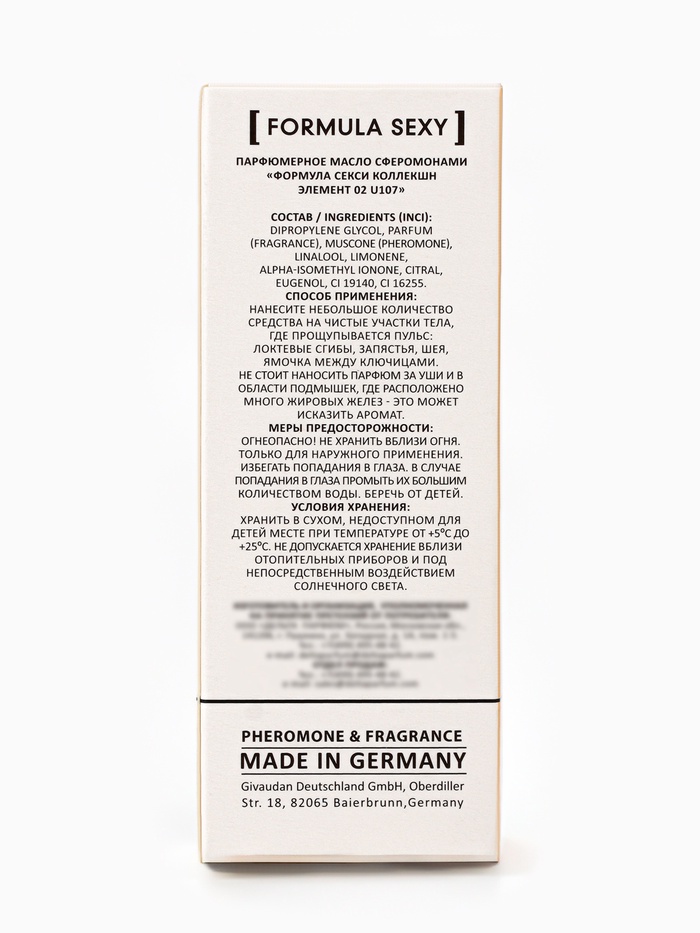 Парфюмерное масло женское с феромонами Formula Sexy Collection Element 02 U107, 8 мл (по мотивам Molecules Escentric 02 (Escentric Molecules) — Характеристики