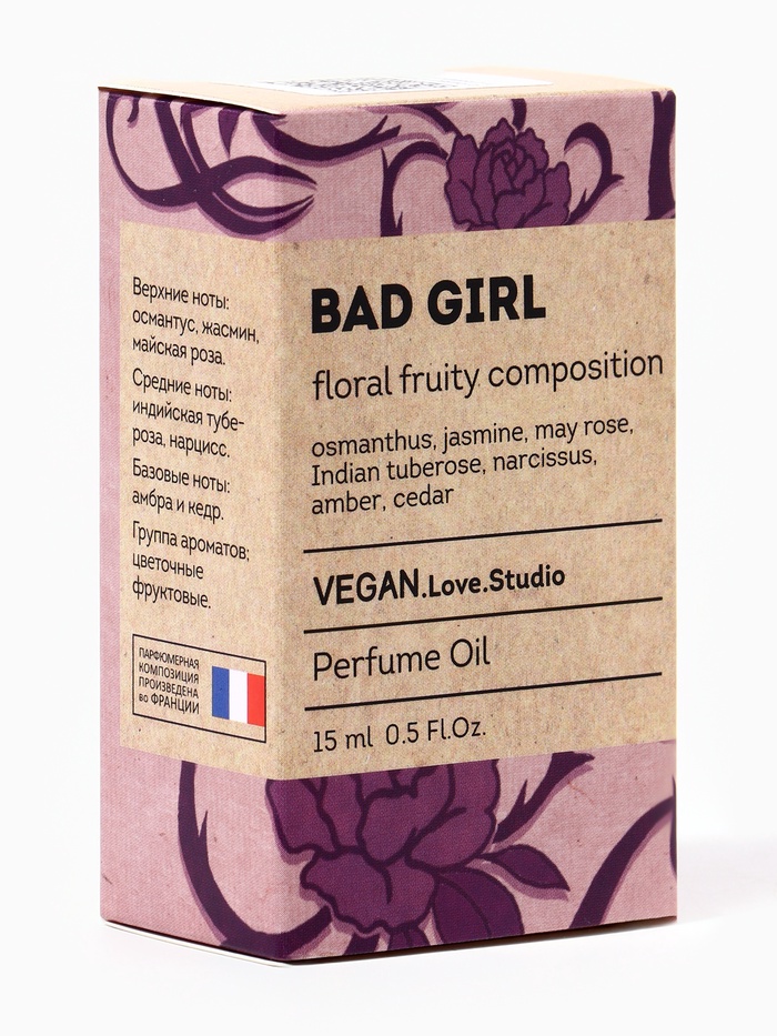 VEGAN.Love.Studio Bad Girl — это аромат силы, соблазна и уверенности, заключённый в утончённой форме. Он создан для женщины, которая умеет быть разной: нежной и решительной, чувственной и независимой. Этот аромат — воплощение харизмы, внутренней энергии и неповторимого стиля.
