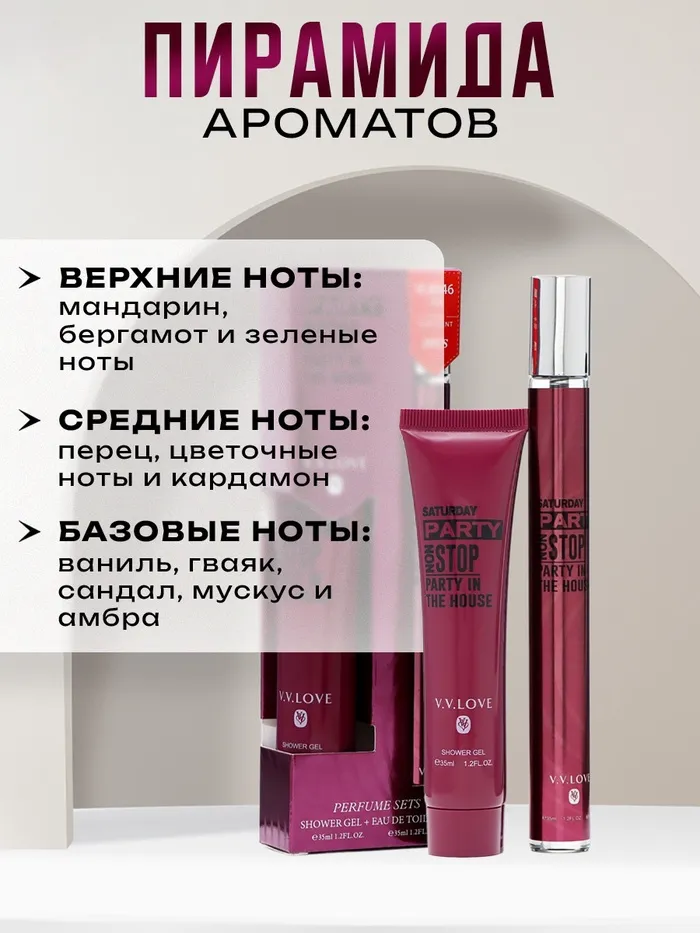 Saturday Party Non Stop являет собой совершенно непревзойденный и волнующий мужской парфюм. Роскошный и вместе с тем утонченный запах наделен очаровывающей и влекущей чувственностью. Эротичность и страсть, таящиеся в нем, открываются чарующими, согревающими нотами бергамота и ванили. Он адресован мужчине, уверенному в себе и сильному, чья незаурядная личность и харизматичный характер влекут и завораживают. Мужчине, выбирающему такие духи, свойственны очарование и привлекательность, в сочетании с непревзойденным чувством стиля и утонченностью. Композиция этого аромата непременно подчеркнет лишь лучшее.