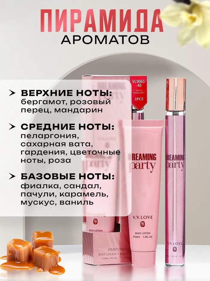 Парфюмерный набор женский Dreaming Party: Туалетная вода, 35мл + Лосьон для тела, 35мл — Характеристики