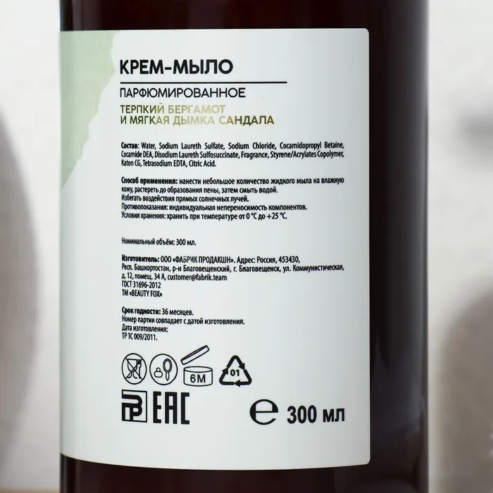 Парфюмированное жидкое мыло "AROMA THEORY", аромат бергамот и сандал, 300 мл — Характеристики