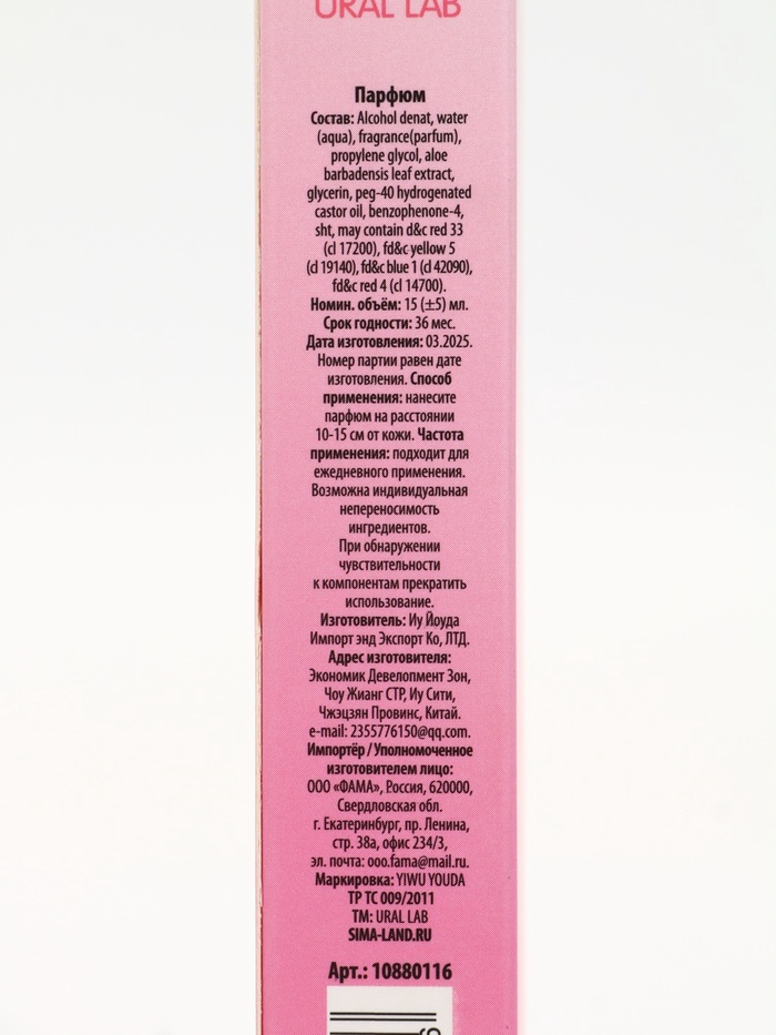 Парфюмированный спрей для тела, аромат фруктовая карамель,15 мл, URAL LAB — Характеристики