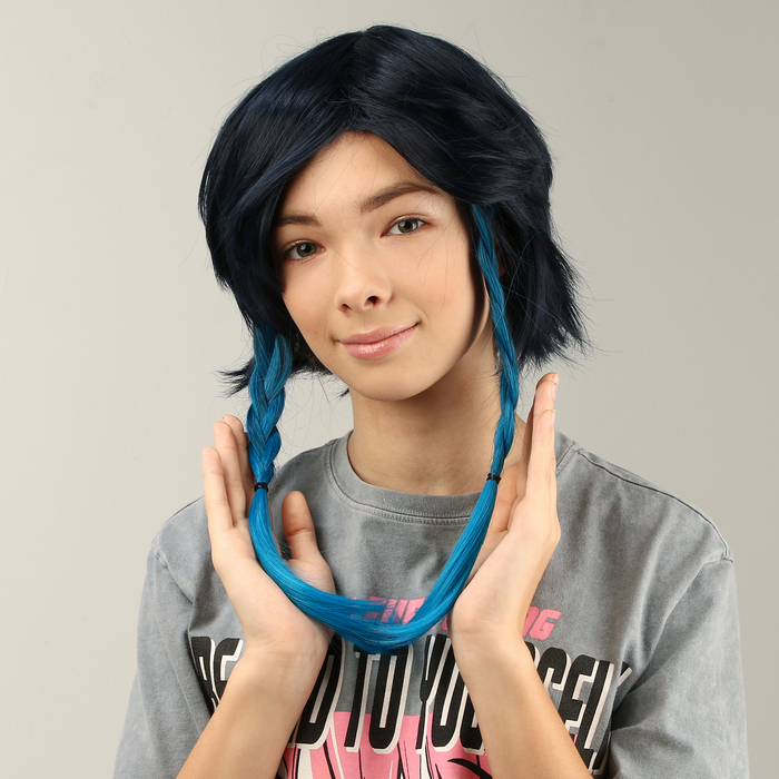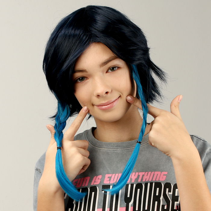 Парик «Аниме» цвет голубой с косами — Характеристики
