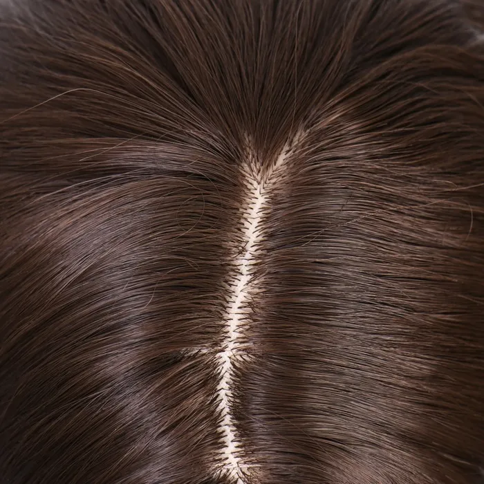 - Возьмите парик двумя руками и аккуратно натягивайте парик со стороны лба двигаясь к затылку. Откорректируйте размер парика с помощью специального крепления и выровняйте пробор.