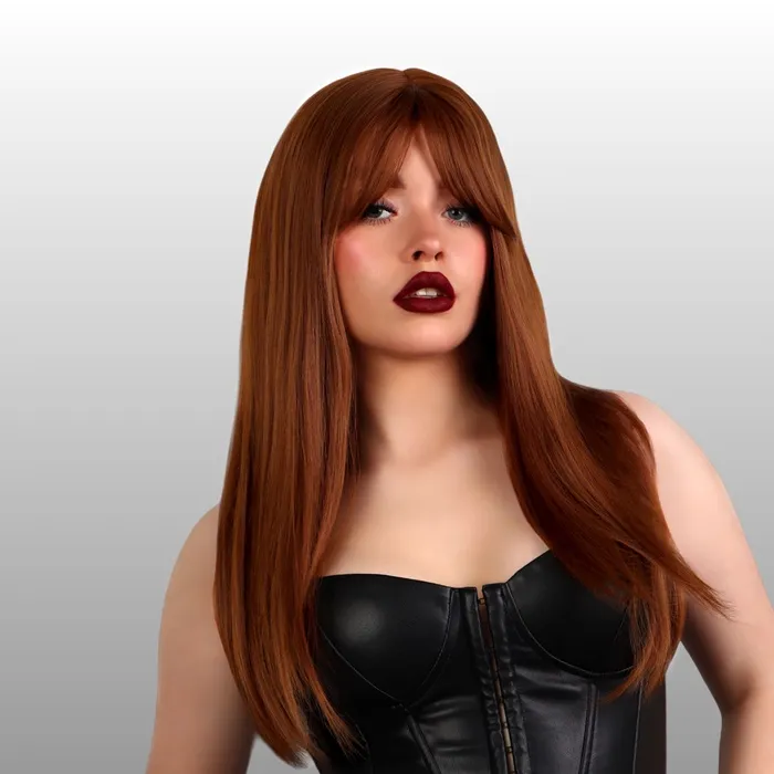 Парик искусственный, с чёлкой, имитация кожи, 60 см, 240 г, рыжий — Характеристики