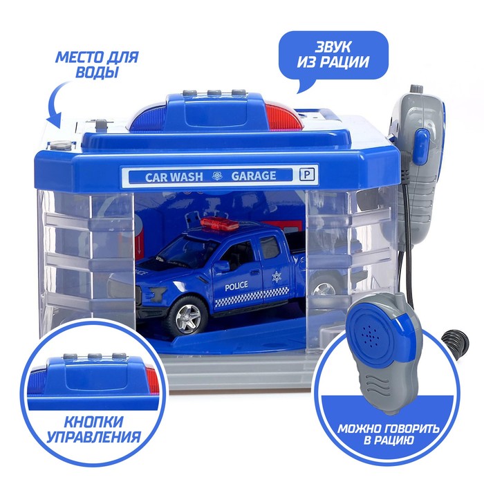 Парковка-автомойка «Полицейский участок» с машинкой и рацией, световые и звуковые эффекты — Характеристики