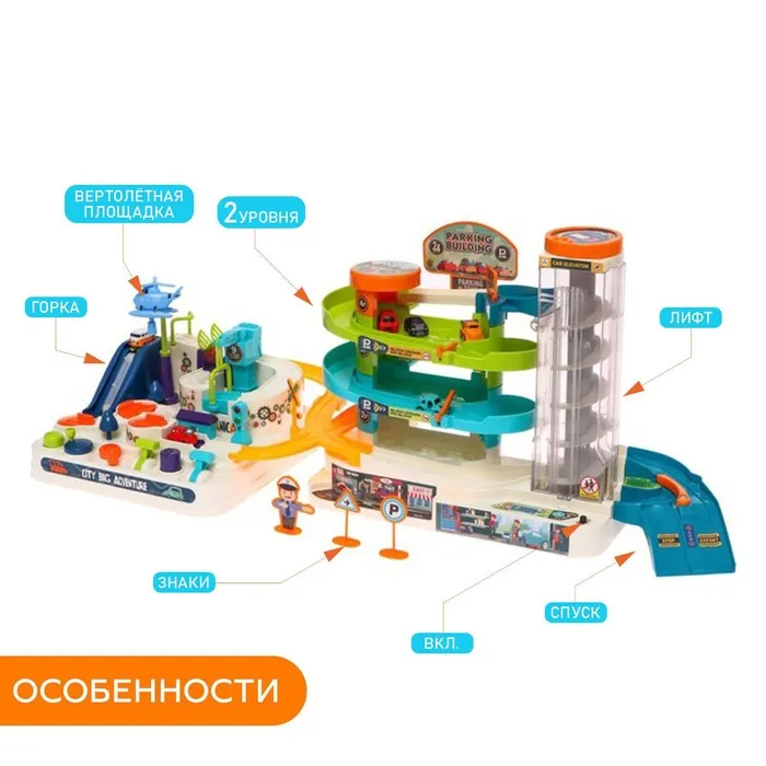 Этот увлекательный игровой набор «Город» с 6 машинками станет настоящим центром притяжения для вашего ребёнка! Многоуровневый трек с автоматическим эскалатором и винтовым лифтом подарит часы весёлых игр и захватывающих приключений.