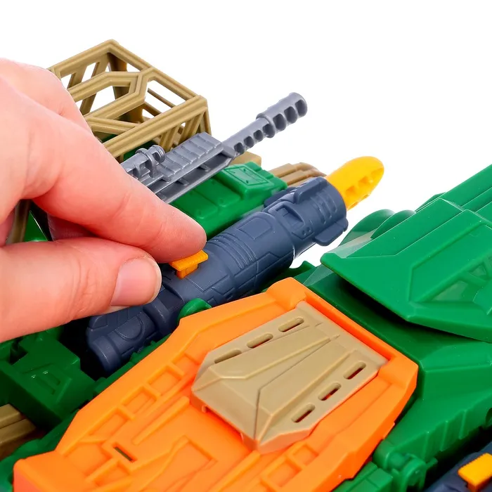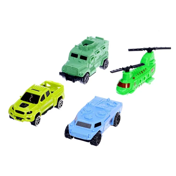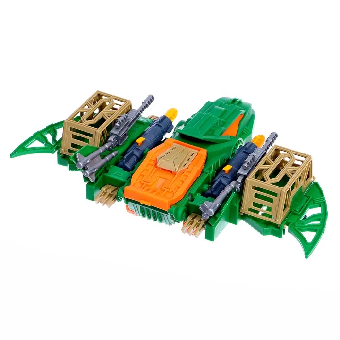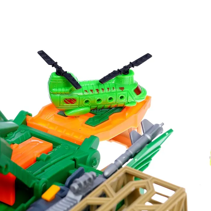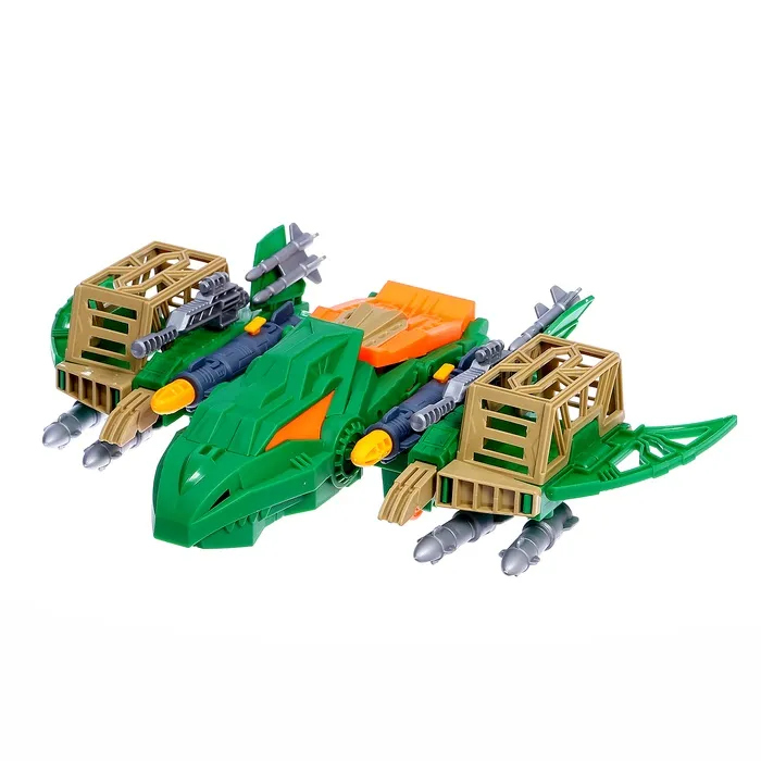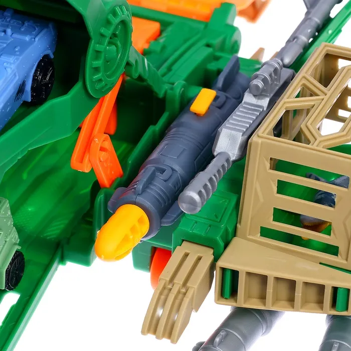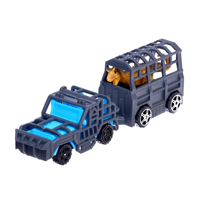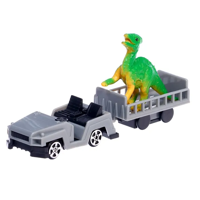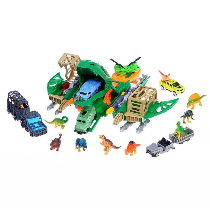 - В комплект входят динозавры, машинки с прицепами, вертолёт и оружие.