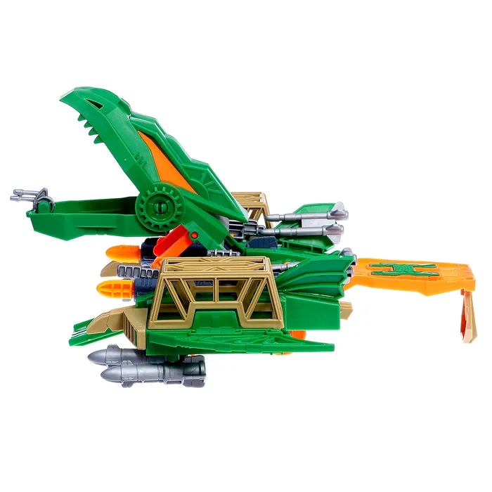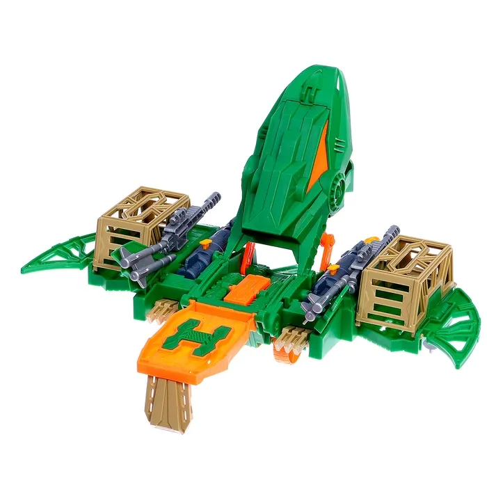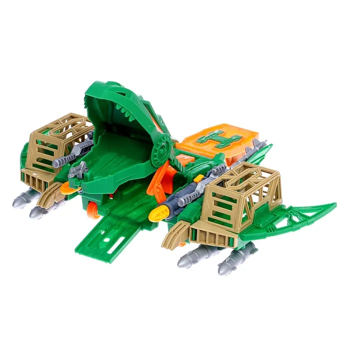 - Дино-база: яркая и вместительная игровая зона с клетками, подвижной платформой, вертолётной площадкой и стреляющими пушками.