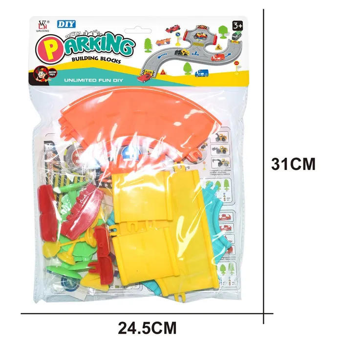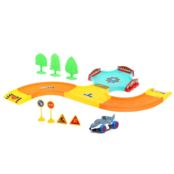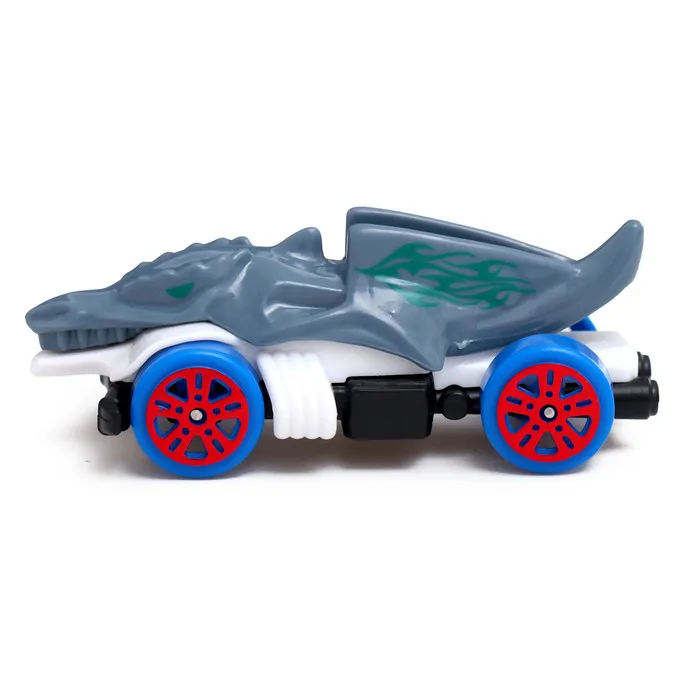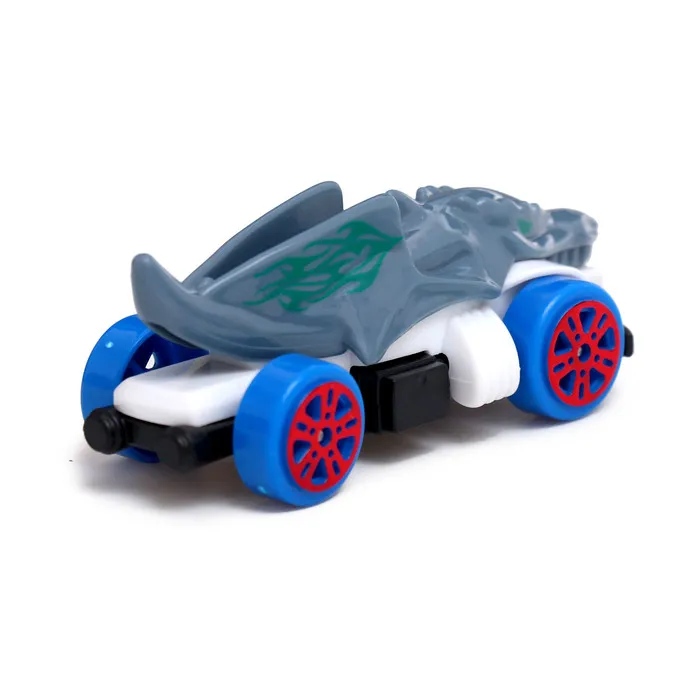 - Игровой трек с аксессуарами: в наборе вы найдёте машинки в виде динозавров, деревья, дорожные знаки и элементы трека, которые легко соединяются в увлекательную трассу.