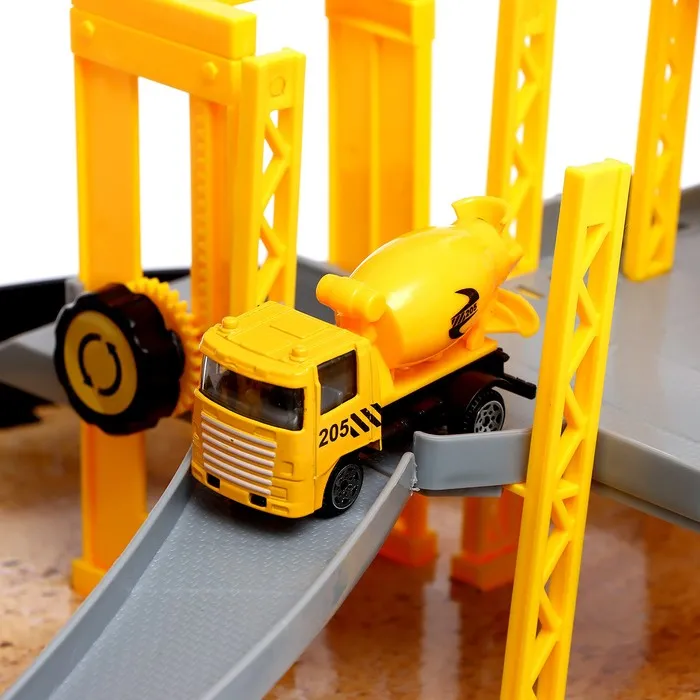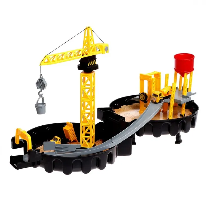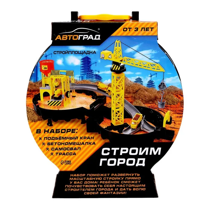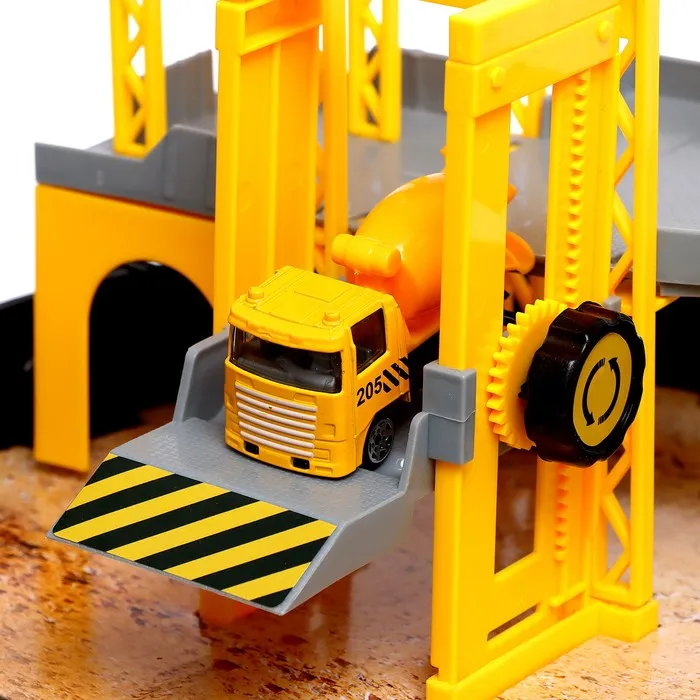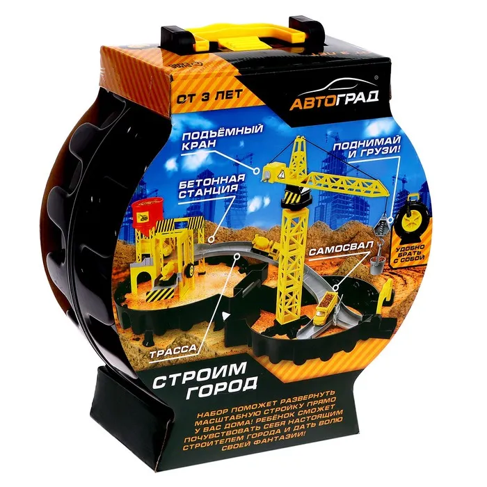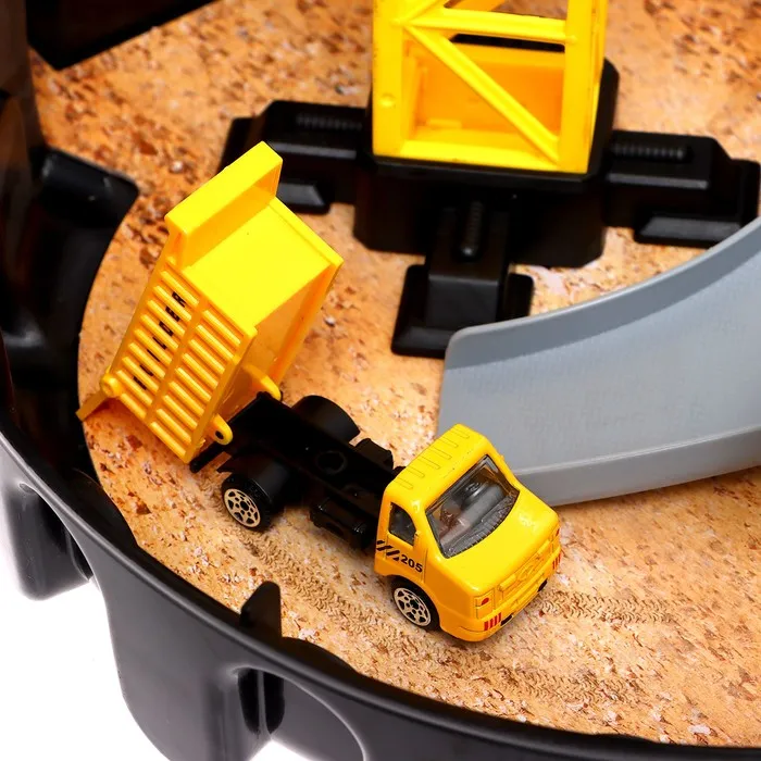 Стоит раскрыть компактный чемоданчик, и перед вами возникнет настоящая стройплощадка. Модуль сочетает множество разнообразных реалистичных деталей с подвижными элементами. На подъёмном кране чадо переместит грузы, на самосвале подвезёт необходимые материалы по двухуровневой трассе, а с бетономешалкой строительной смеси хватит на воплощение любых задумок!