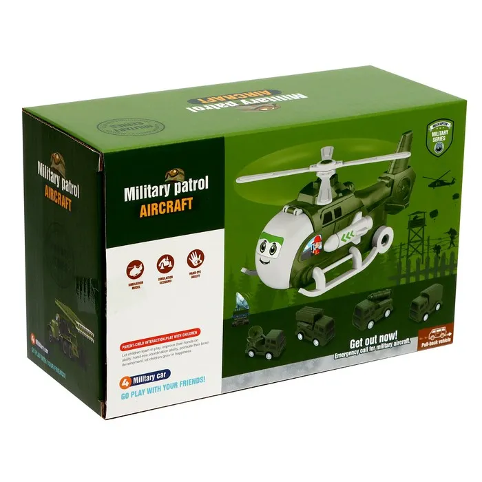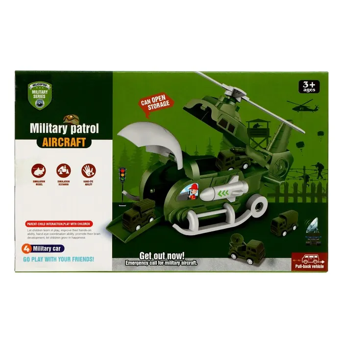 С игровым набором «Военный вертолёт» ребёнок устроит зрелищные сражения, организует настоящий патруль в воздухе и на земле и придумает увлекательные сюжеты игры с разнообразной военной техникой.