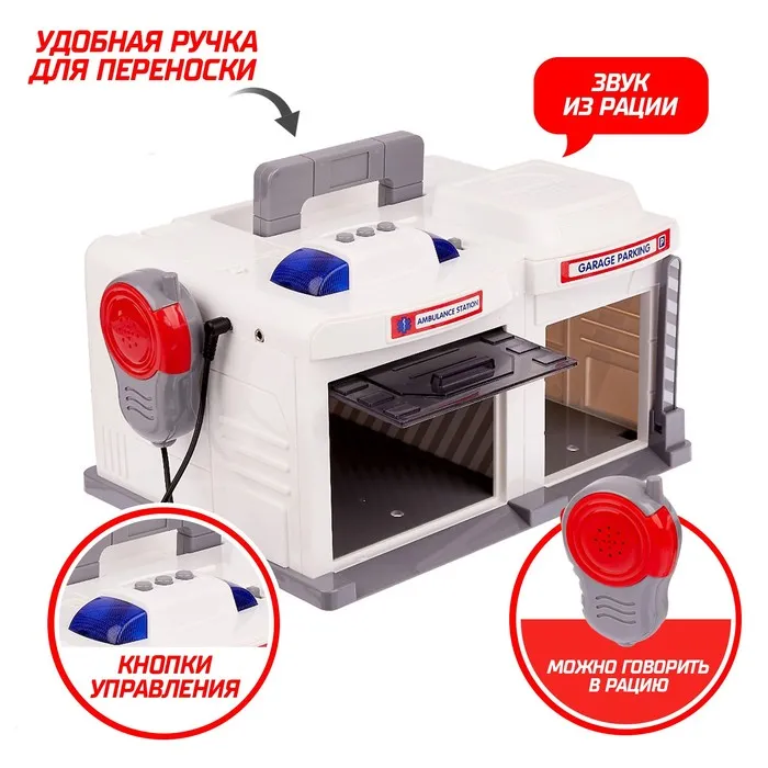 Парковка - гараж «Скорая помощь» с металлической машинкой и рацией, световые и звуковые эффекты — Характеристики