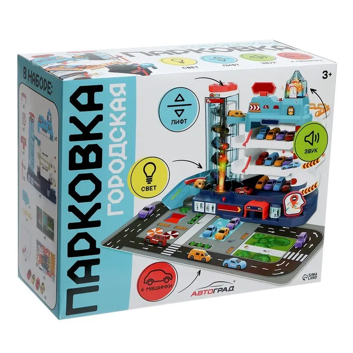 Парковка «Городская», с лифтом, 3 уровня, 4 машинки, световые и звуковые эффекты — Характеристики