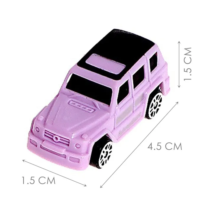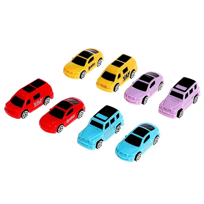 • В комплекте 8 машинок. Размер каждой: 4,5 × 1,5 × 1,5 см.