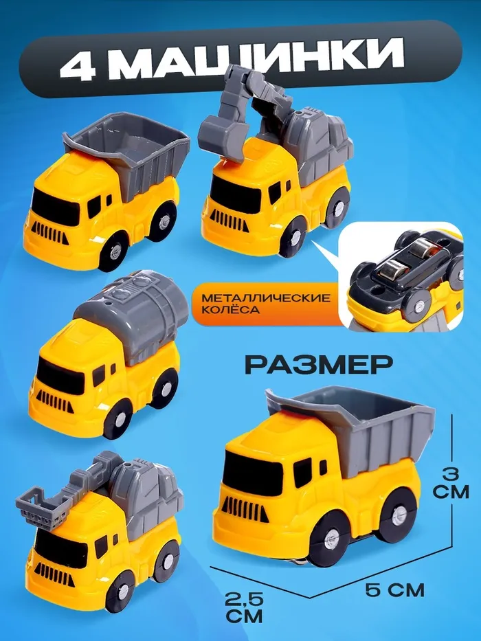 Парковка - игровой стол «Приключения на стройке», набор 4 машинки, конструктор — Характеристики