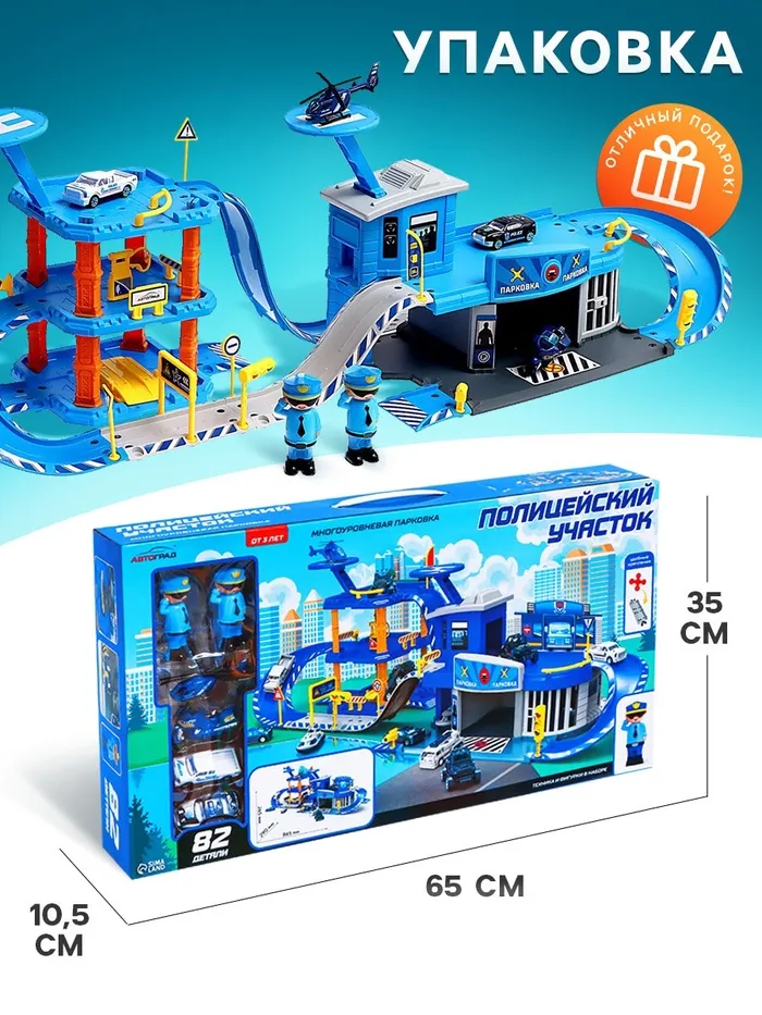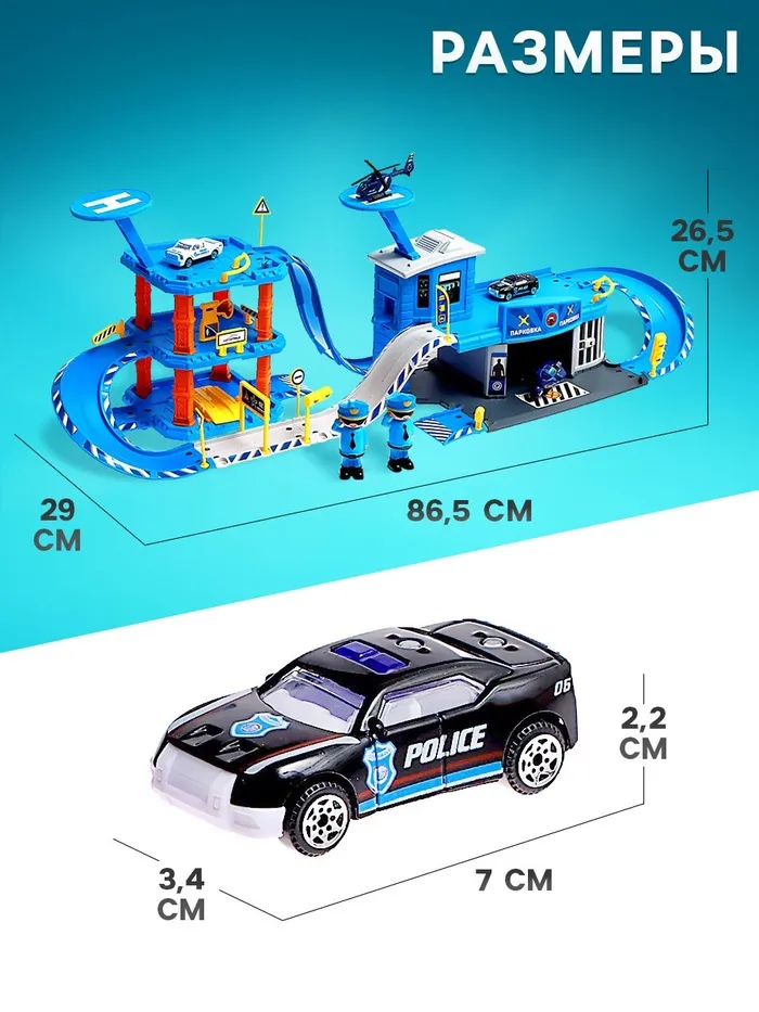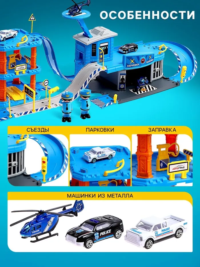 Парковка «Полицейский участок», с металлическими машинками и вертолётом — Характеристики