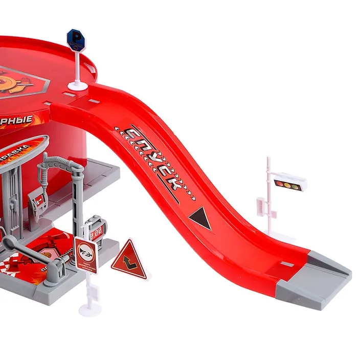 Машинки можно припарковать на 1-ом и 2-ом этаже гаража, в комплекте есть дорожные знаки и указатели. Благодаря им игра с машинками станет ещё увлекательнее и разнообразнее. Также она поможет ребёнку освоить основные правила дорожного движения.