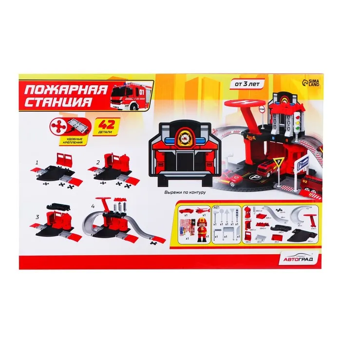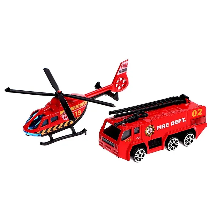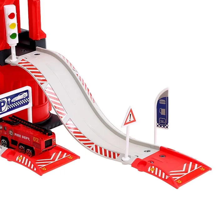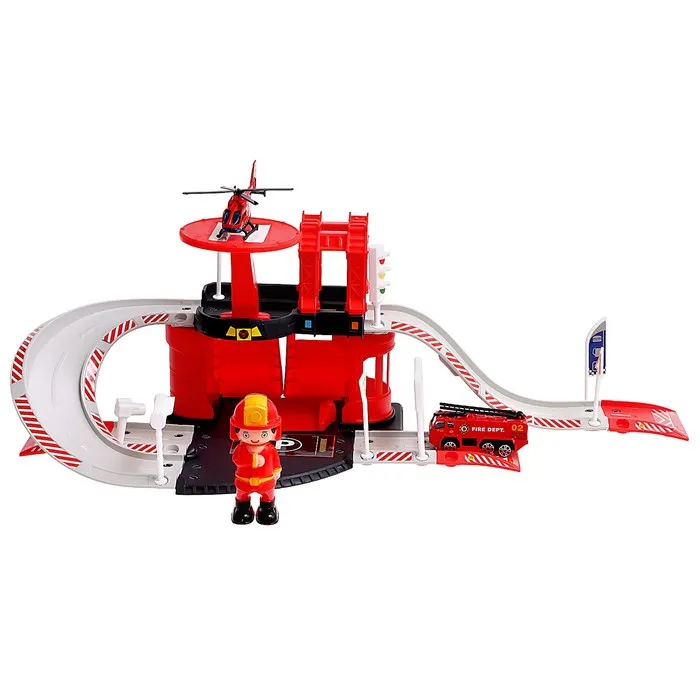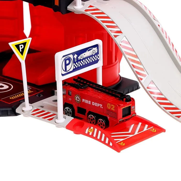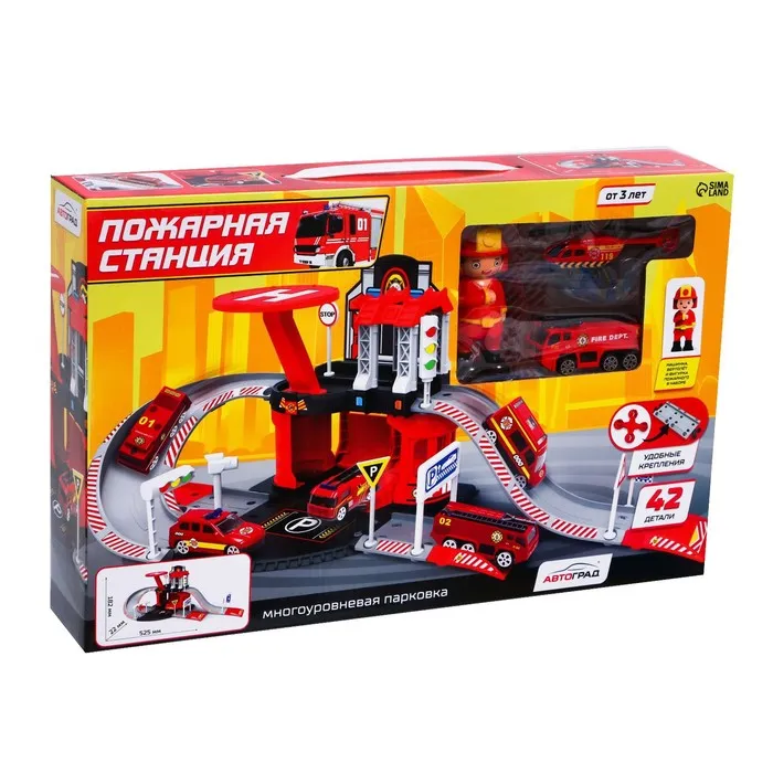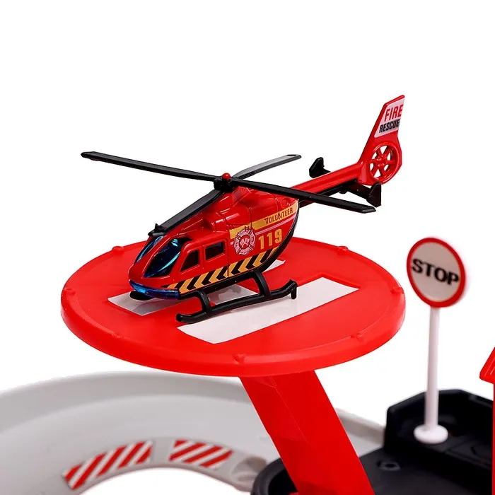 Парковка «Пожарная станция», с металлическими машинкой и вертолётом — Характеристики