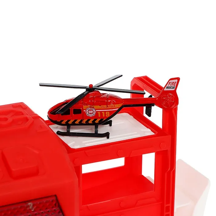 - В набор входят: пожарная машинка, вертолёт и аксессуары.