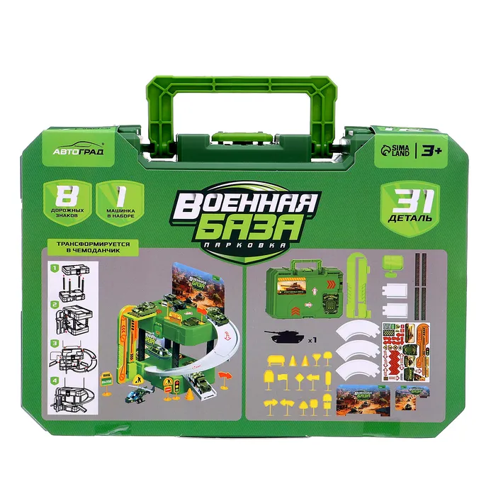 Парковка «Военная база» — это увлекательный игровой набор для детей от 3 лет, включающий 31 деталь, 8 дорожных знаков и военную машинку. Этот комплект позволит ребёнку окунуться в мир военно-патриотических игр, создавая собственную базу и разыгрывая военные операции.