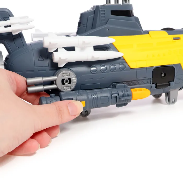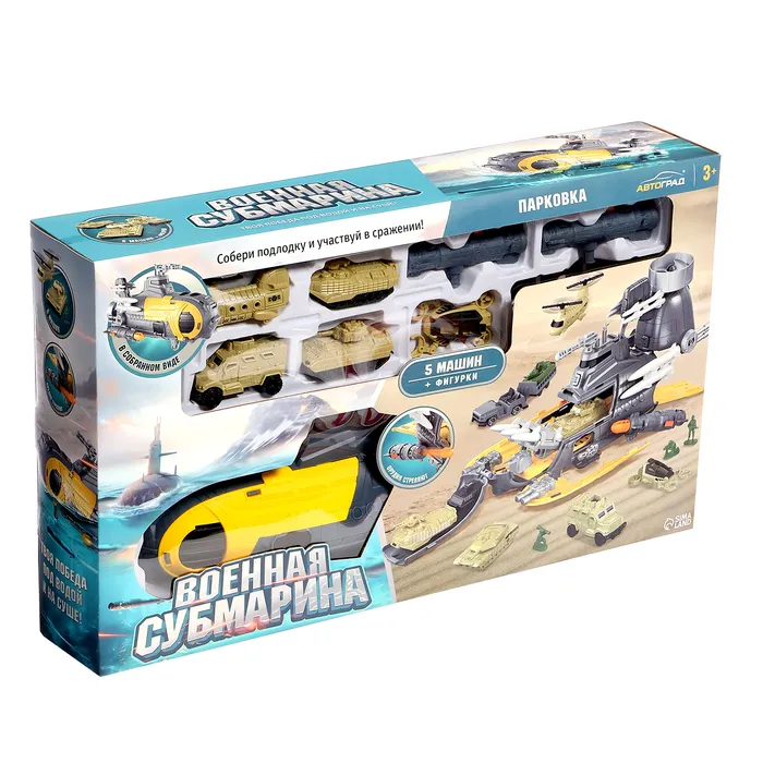 С парковкой «Военная субмарина» ребёнок успешно выполнит любую сложную миссию. Эта удивительная подводная лодка оснащена разными игровыми снарядами, которые сделают игру увлекательной и интересной. А дополнительные фигурки и машинки в наборе добавят динамики и реалистичности, познакомят малыша с новыми видами транспорта.