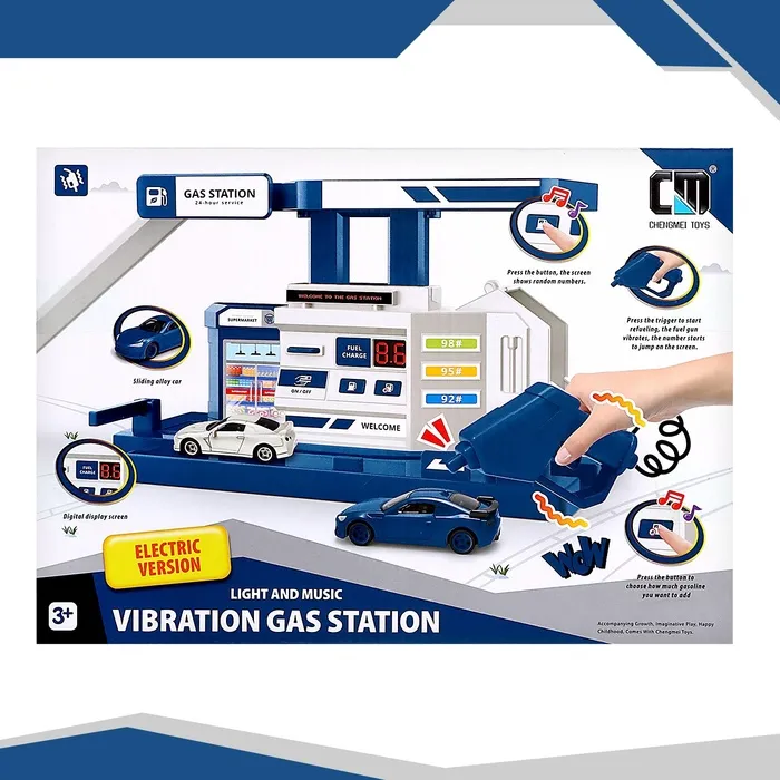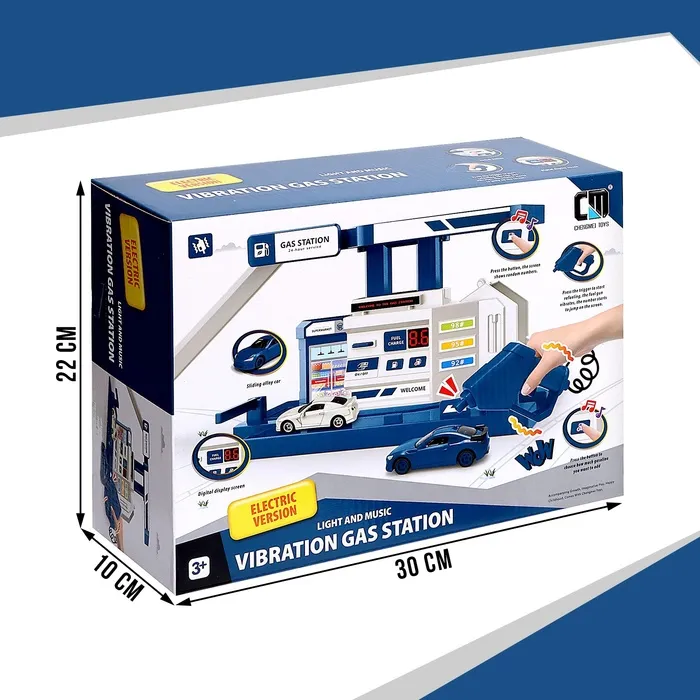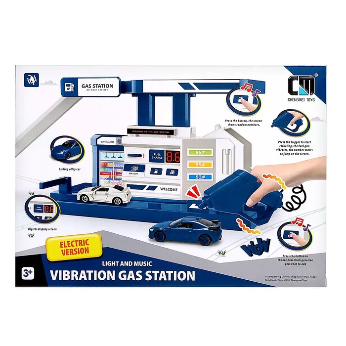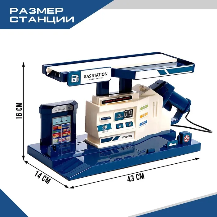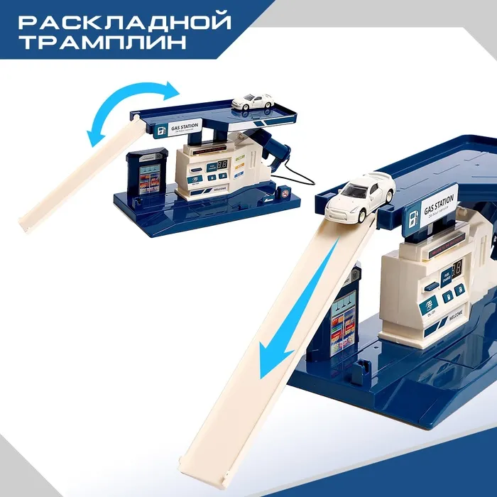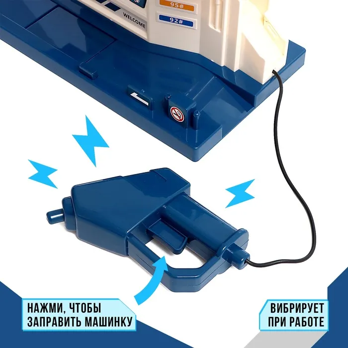 Парковка «Заправочная станция» пополнит топливо в любимой машинке малыша. Транспортный комплекс оснащён заправочной колонкой с возможностью оплаты и выбора количества топлива. Пистолет вибрирует при заправке.