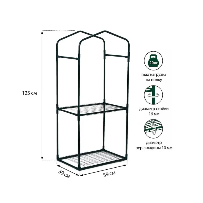 Максимальная нагрузка на каждую полку парника: 20 кг.