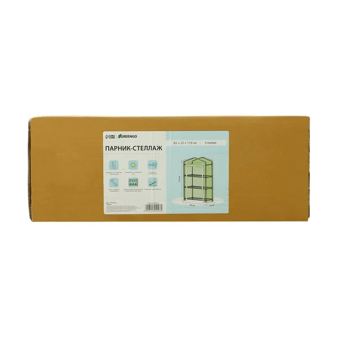 Парник-стеллаж, 3 полки, 110×22×65 см, металлический каркас d=12 мм, чехол плёнка 80 мкм, Greengo — Характеристики