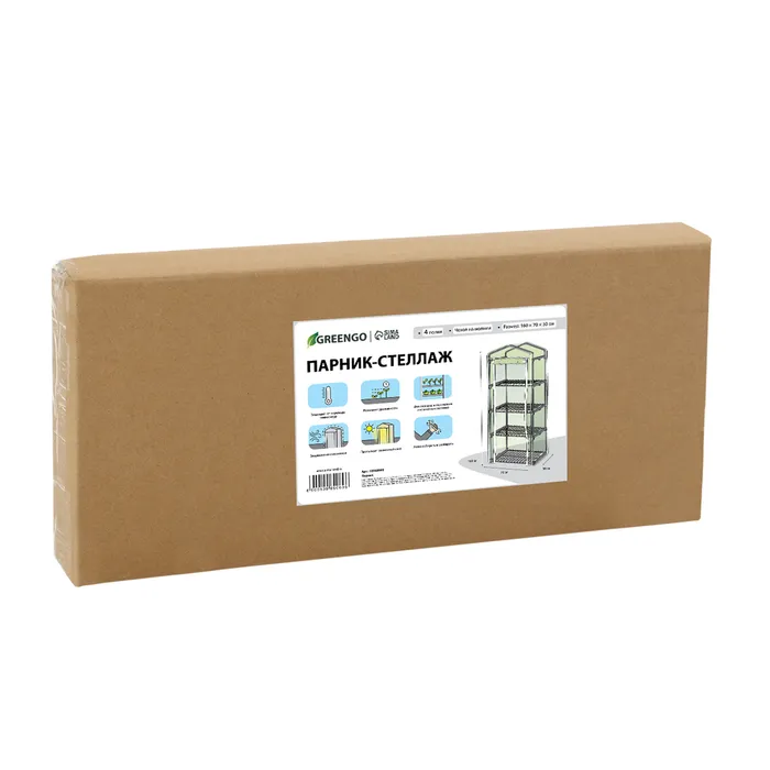 Парник-стеллаж, 4 полки, 160×70×30 см, металлический каркас d=16 мм, чехол плёнка 80 мкм, Greengo — Характеристики