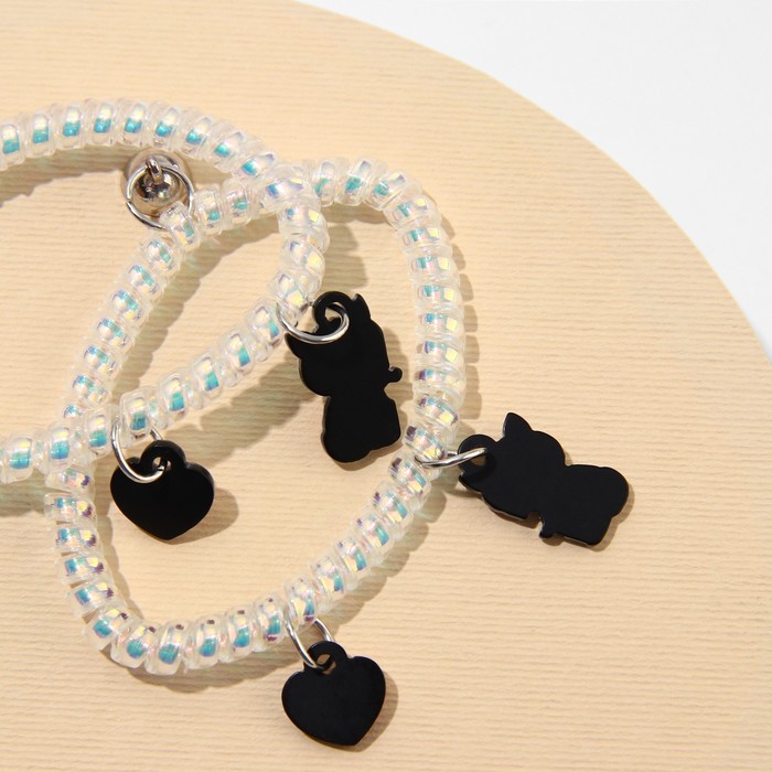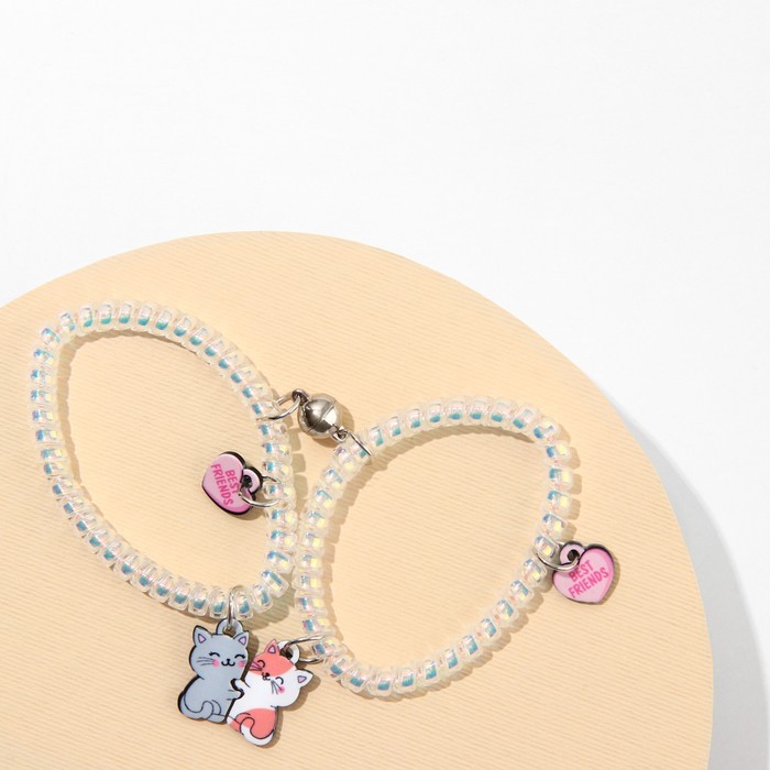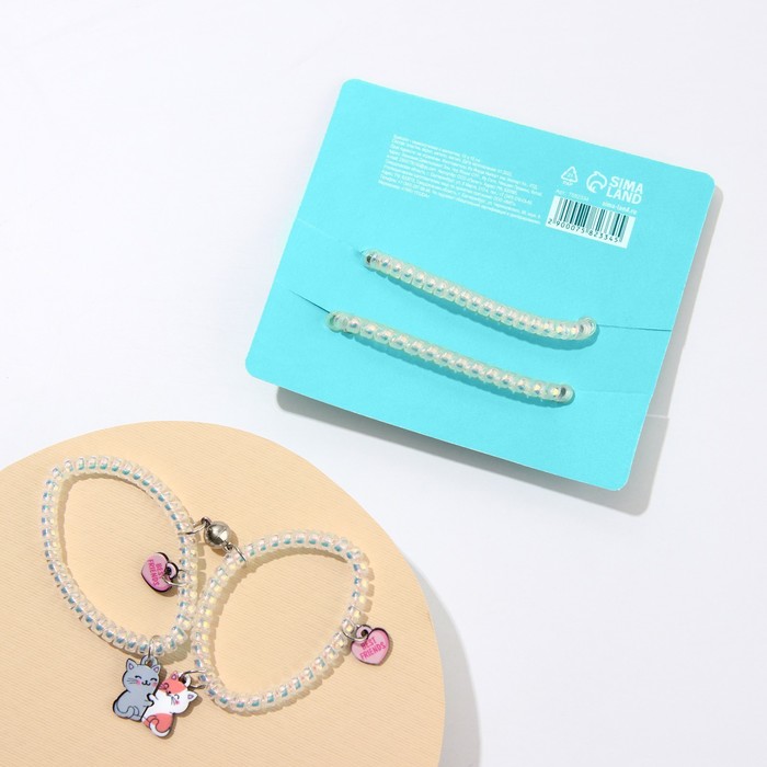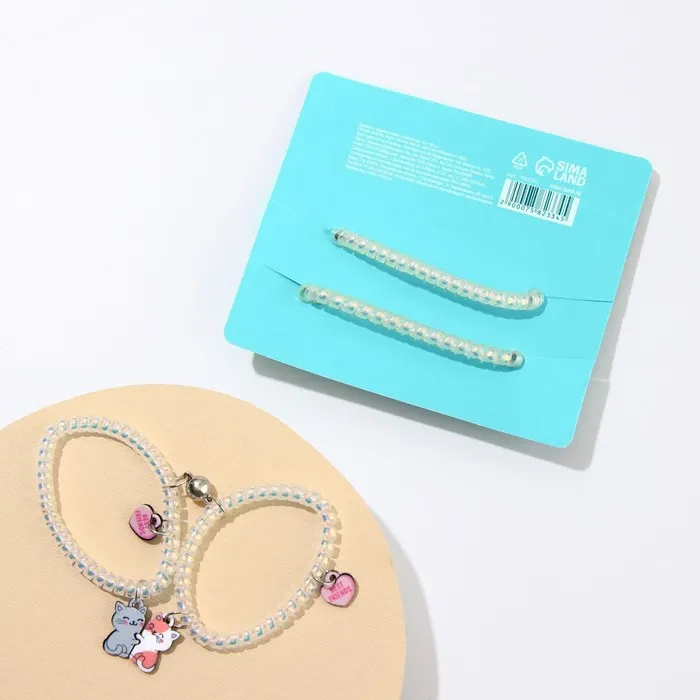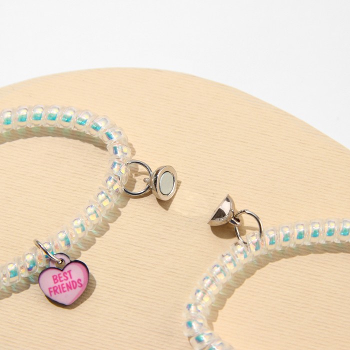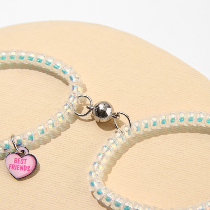 Отличный подарок любимой девушке, молодому человеку, подруге или другу. Парные браслеты для влюбленных, для подруг и лучших друзей выполнены из пластика, надеты на резинку-пружинку.