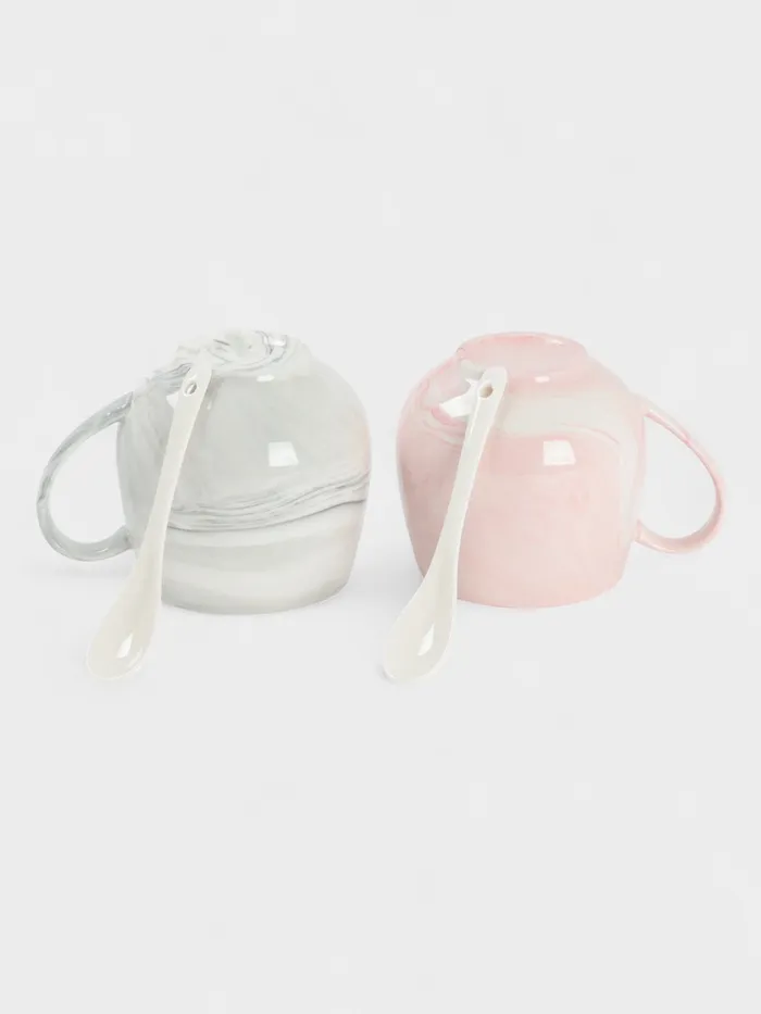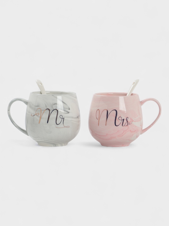 Парные кружки «MR и MS», набор 2 шт., 300 мл, с ложкой, керамика, серый, розовый — Характеристики