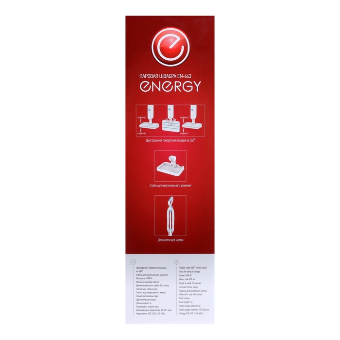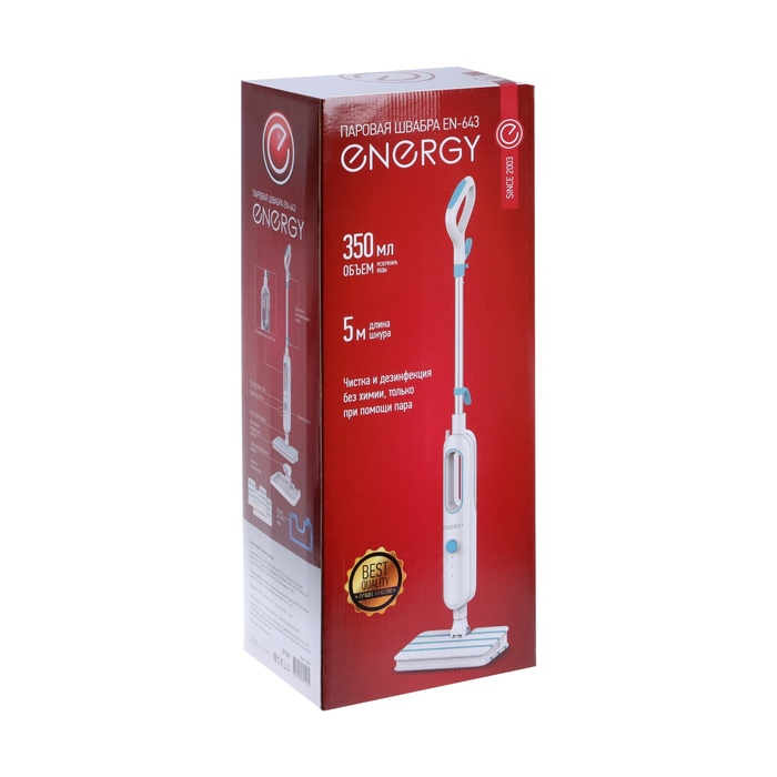 Паровая швабра Energy EN-643 — это эффективное решение для быстрой и качественной уборки вашего дома. С мощностью 1400 Вт она создает мощный поток пара, который легко справляется с загрязнениями на различных покрытиях, включая плитку, паркет и ламинат.