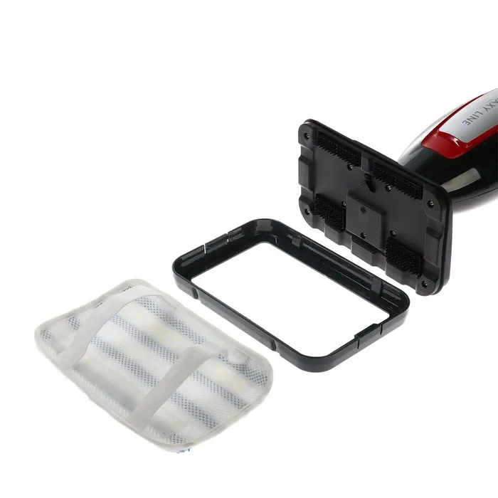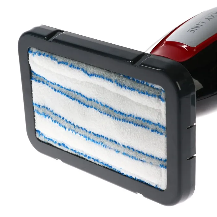 Максимальное давление пара в GL6400 составляет 1 бар. Пар проникает внутрь любого загрязнения и выталкивает его наружу, после чего его легко устранить с помощью щетки или тряпки. Швабра оснащена съемной рамкой для ковров и накладкой из микрофибры.