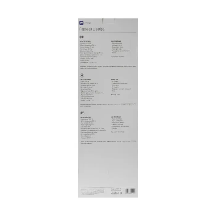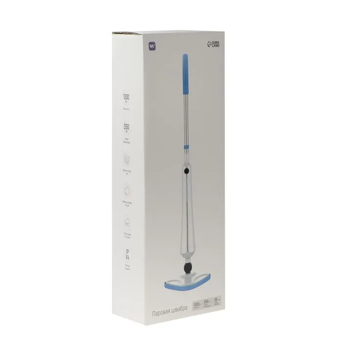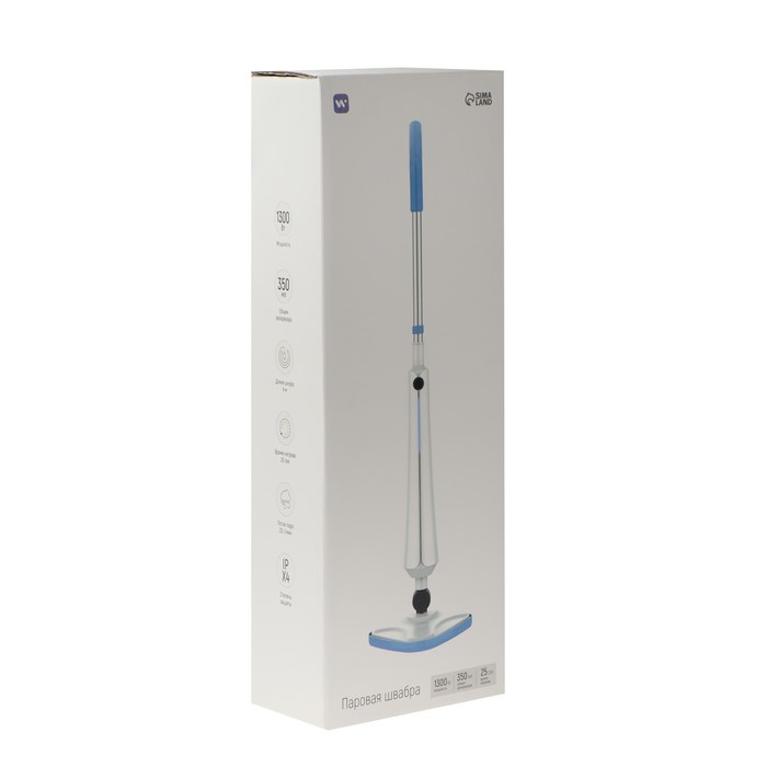Паровая швабра Windigo WSM-01, 1300 Вт, 350 мл, время нагрева 25 сек, шнур 4 м, бело-голубой — Характеристики
