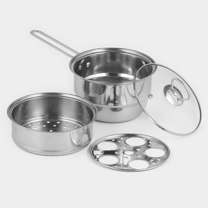 Пароварка-яйцеварка из нержавеющей стали «Вейлер», 18×22 см, стеклянная крышка, цвет хромированный — Характеристики