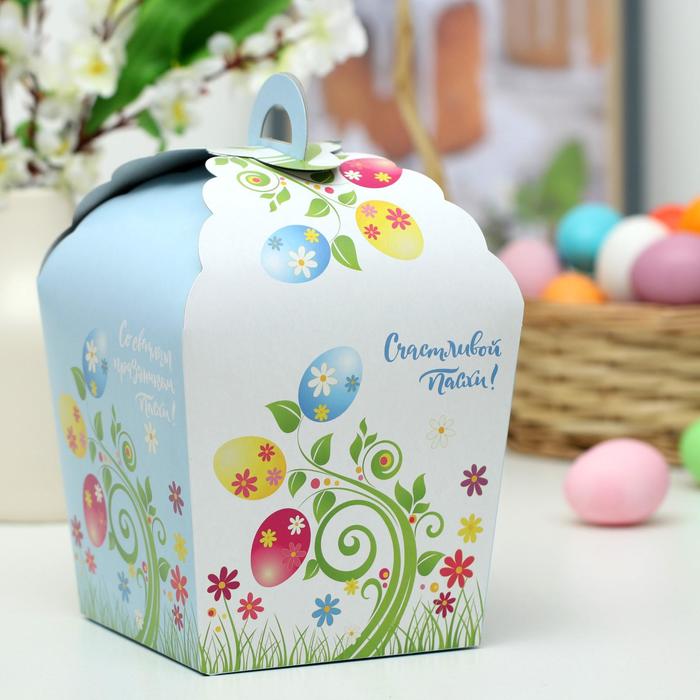 Пасхальная подарочная коробочка «Счастливой Пасхи!», пасхальные яйца на веточке, 17×17×26 см — Характеристики