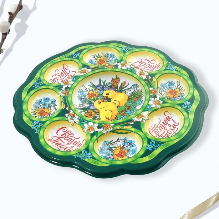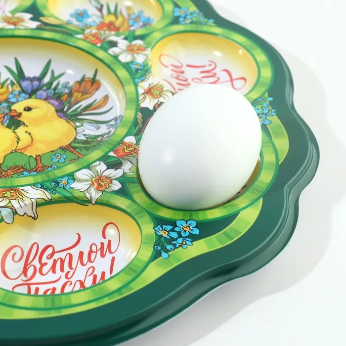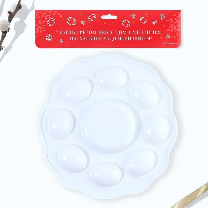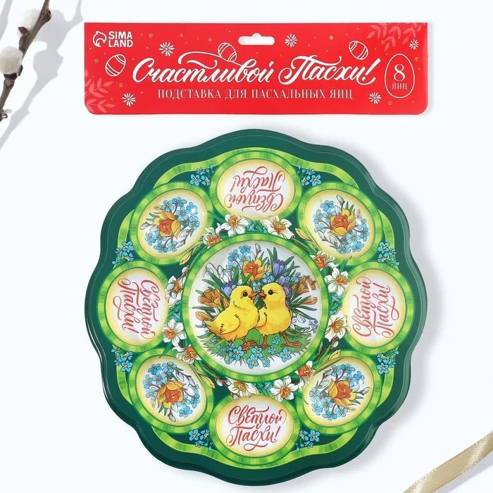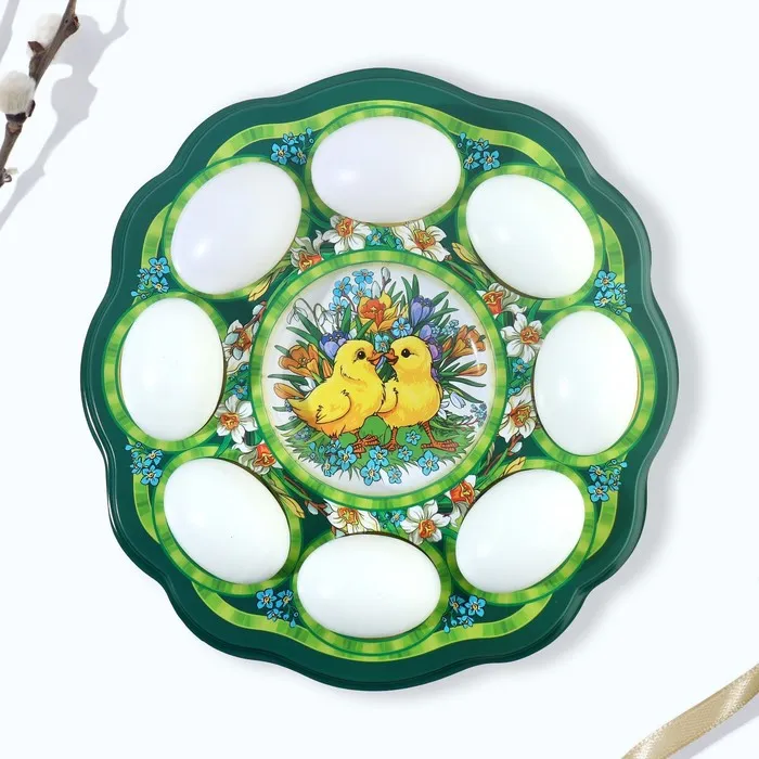 Пасхальная подставка предназначена для праздничного украшения Вашего стола в Светлый День Пасхи. В центре декоративной подставки находится углубление для пасхального кулича диаметром 9,5 см, а по окружности - 8 отверстий для пасхальных яиц. Диаметр декоративной подставки - 25 см.