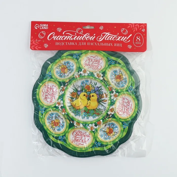 Пасхальная подставка на 8 яиц и кулич «Цыплята в цветах» на пасху, 24 х 25 см. — Характеристики