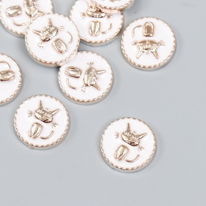 Декор для творчества пластик «Котик в круге», белый, золото, 0.3×1.8×1.8 см