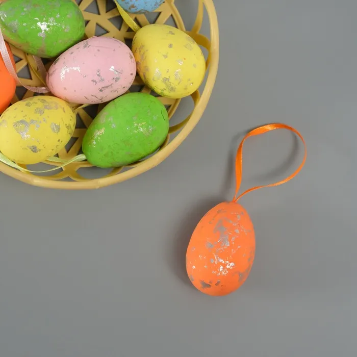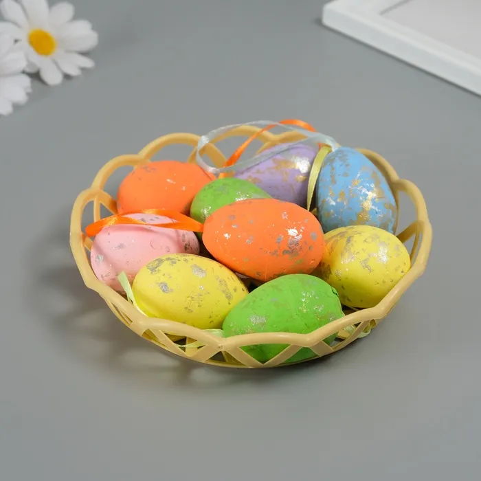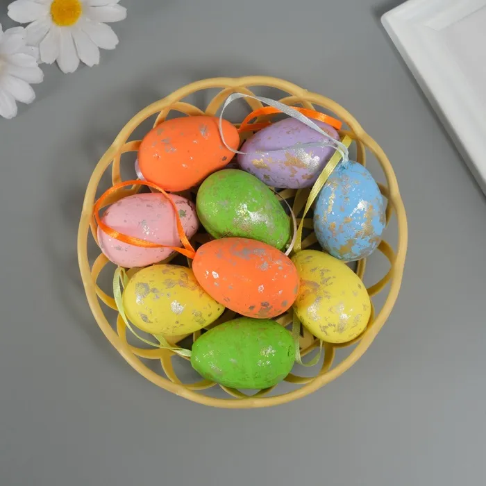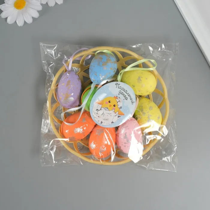 Пасхальный декор для творчества «Яйцо с лентой», набор 9 шт., яйцо 4.5×3 см, 3.7×14.5×14.5 см, МИКС — Характеристики